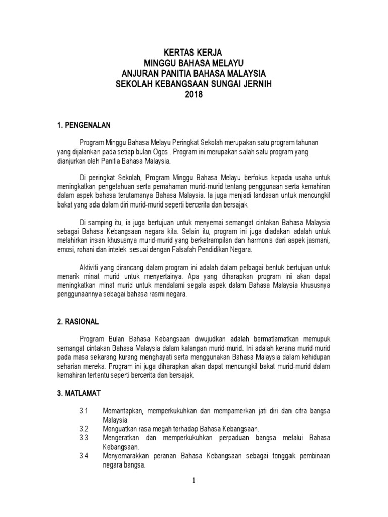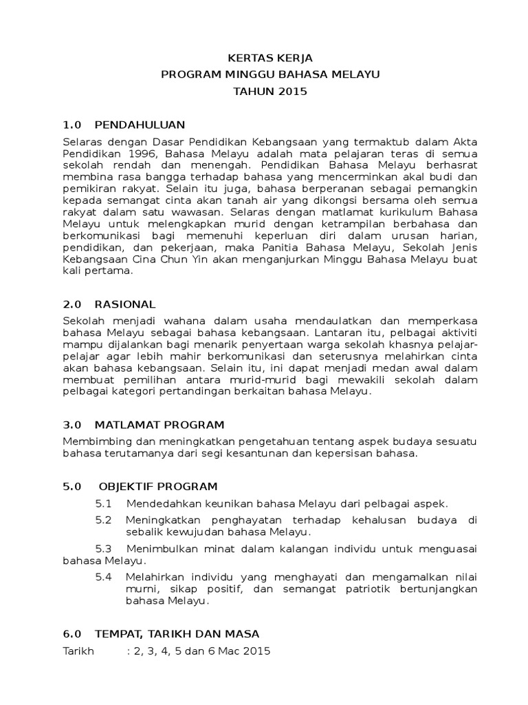 Contoh kertas kerja programdocx. Minggu panitia dilaksanakan selama 5 hari persekolahan mengikut aktiviti panitia tersebut. Kertas Kerja Minggu Bahasa Melayu.