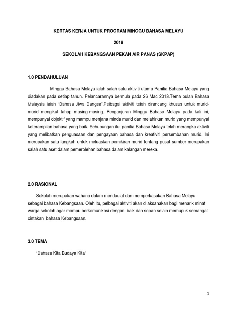 Kertas Kerja Minggu Bahasa Melayu 2018 Pdf