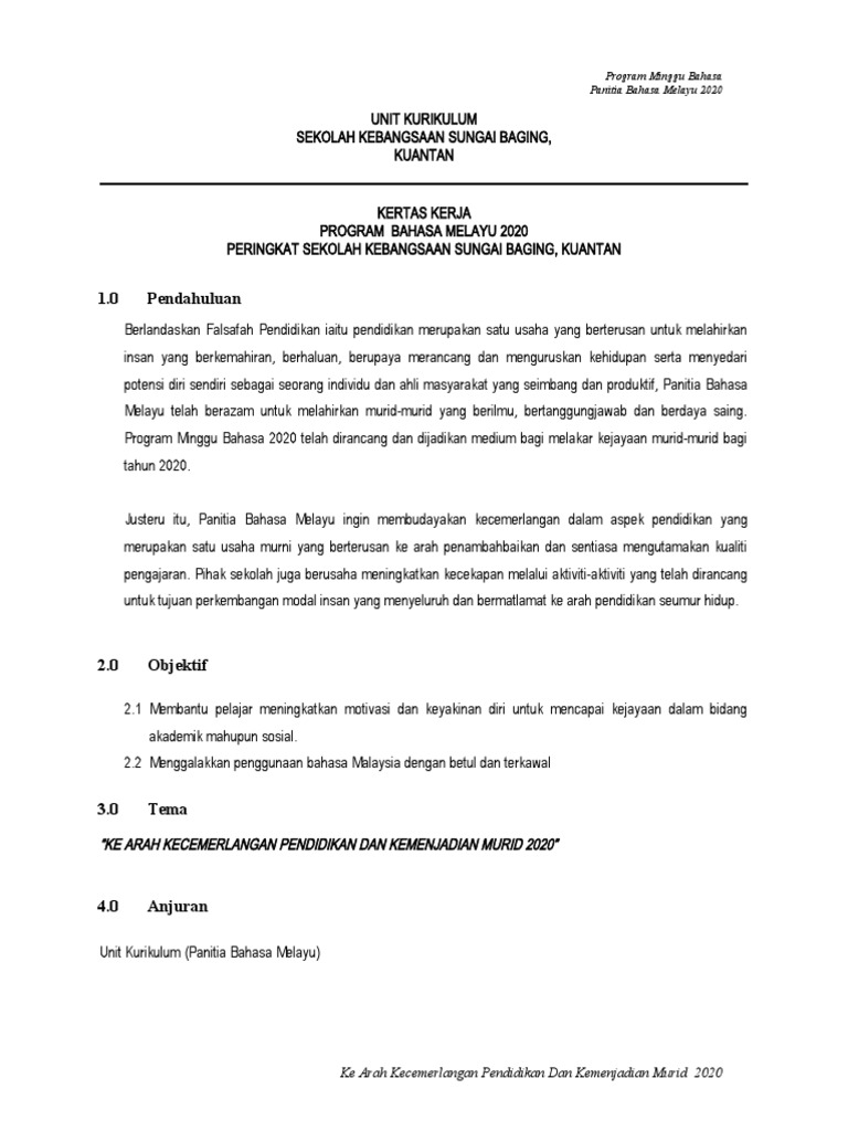 Kertas Kerja Minggu Bahasa Panitia Bahasa Melayu 2020 Pdf